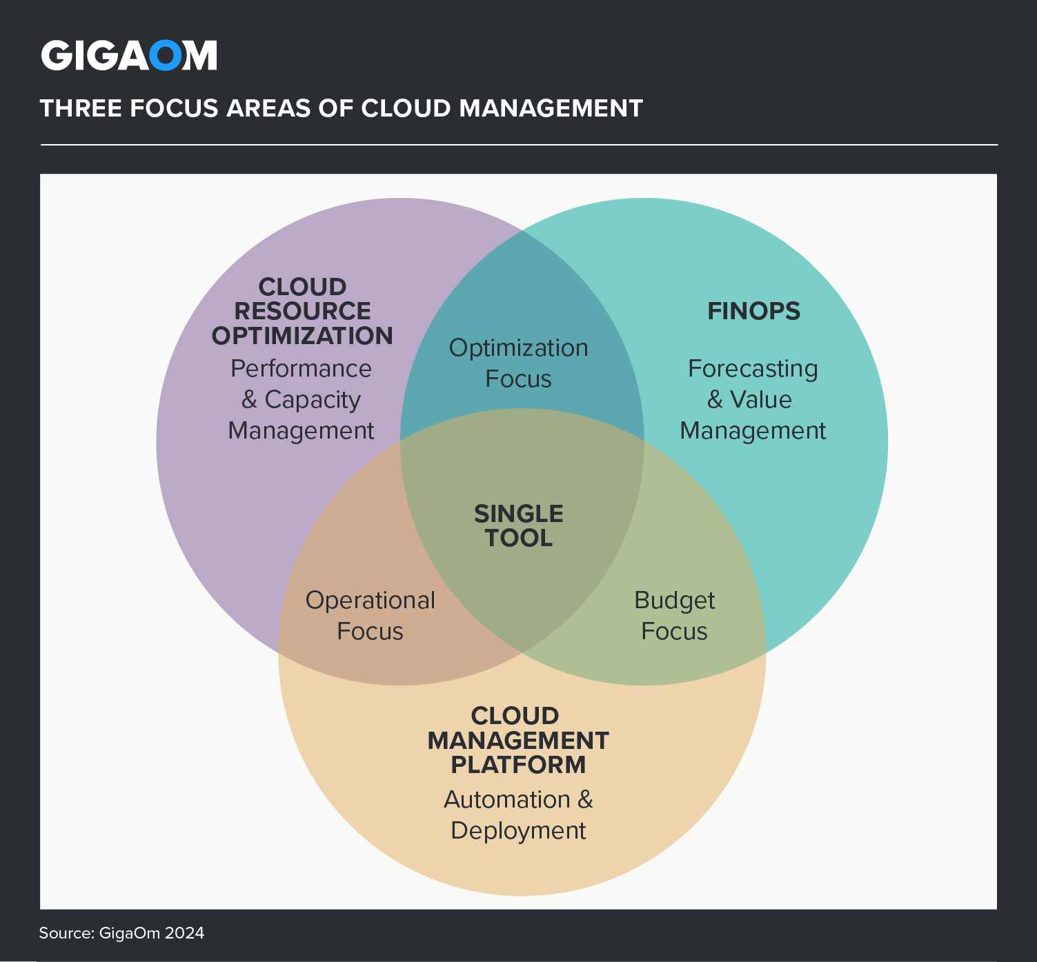 As a discipline, cloud management encompasses three functional areas, often implemented with separate tools that are integrated to some degree: