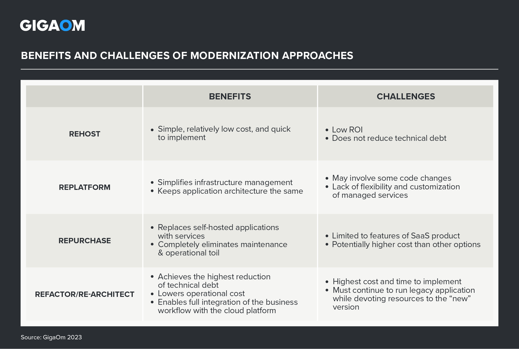 Table 1. Benefits and Challenges of Modernization Approaches