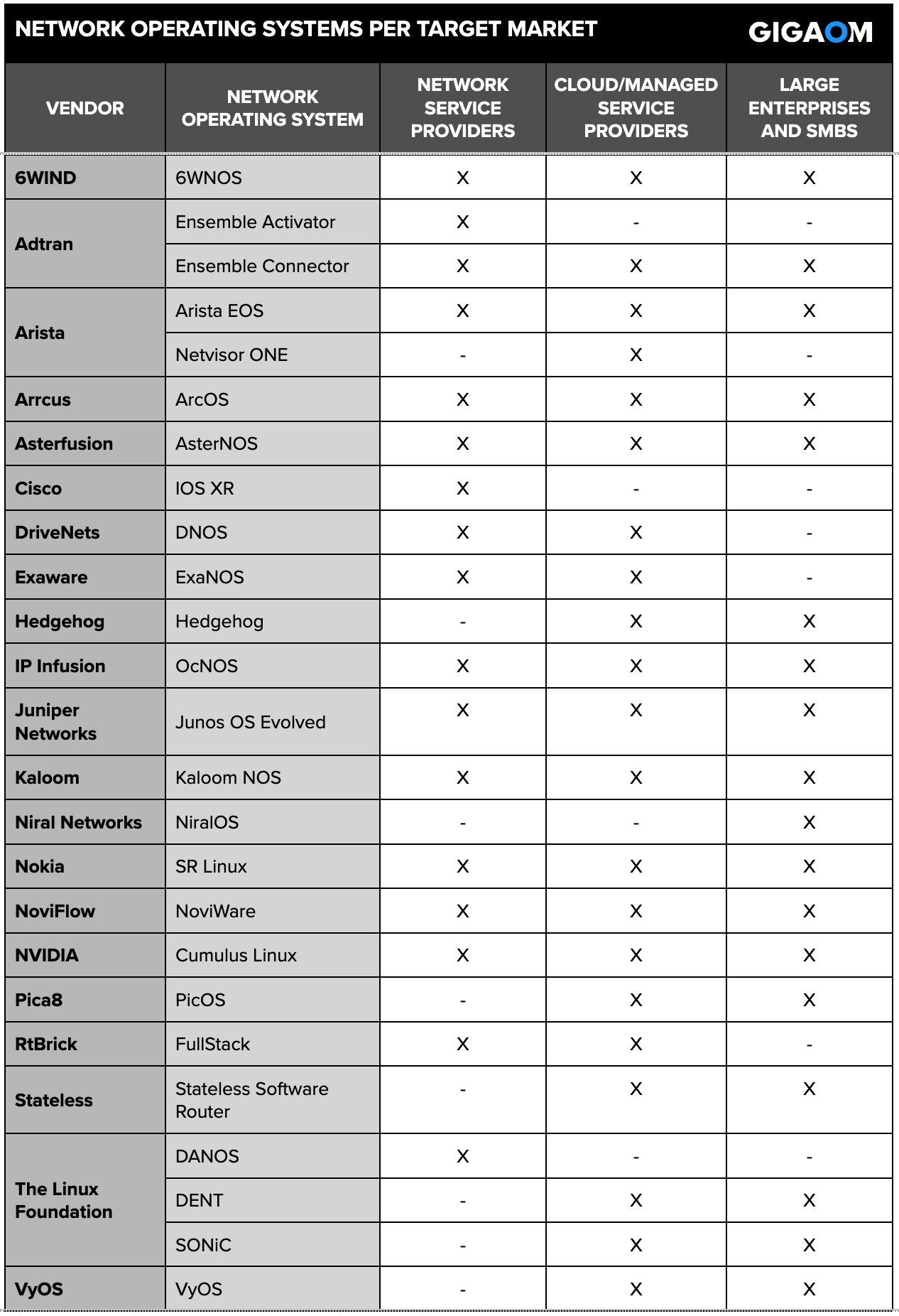 Due to the large number of suppliers and solutions available, we have divided the network operating system landscape into three reports based on the target market.